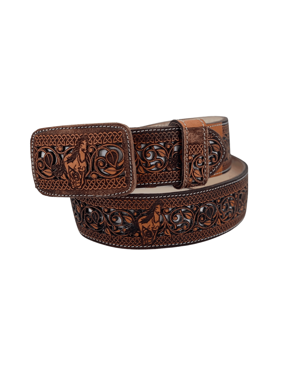 Men S Contrasting Tooled Leather Western Belt
